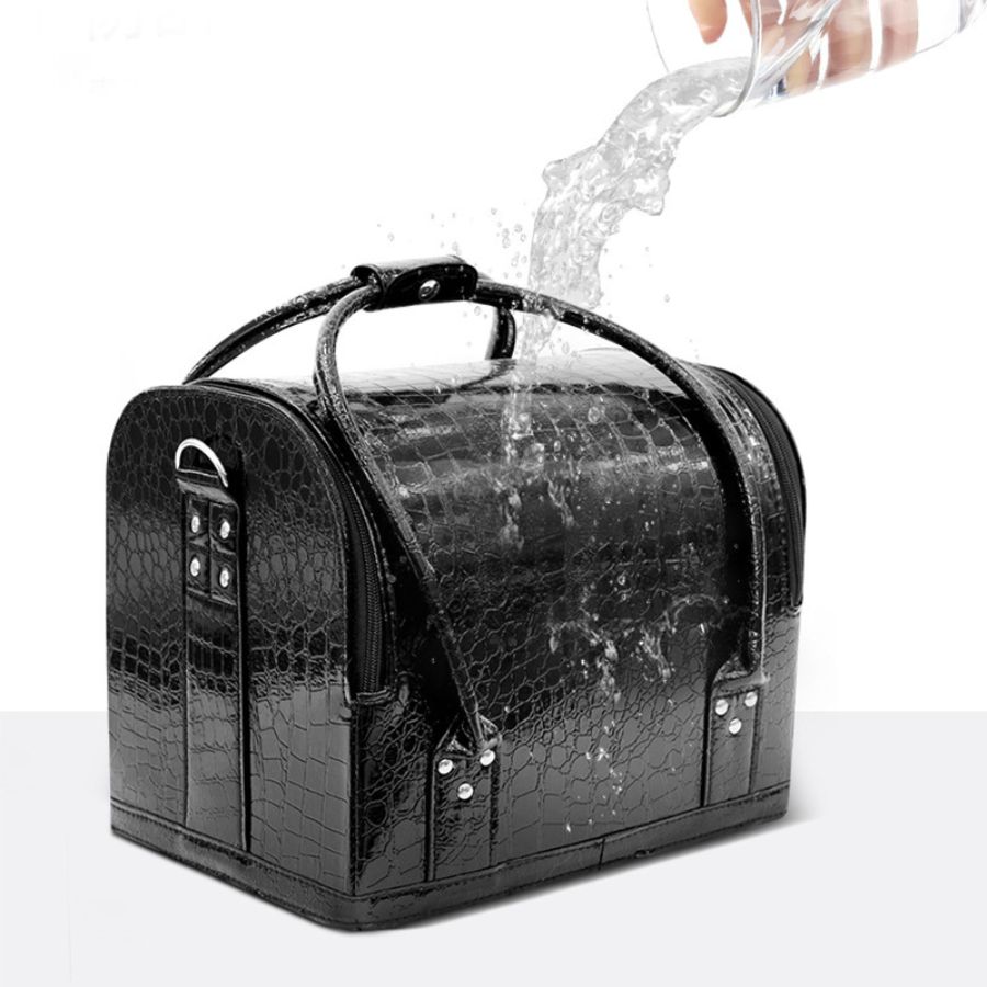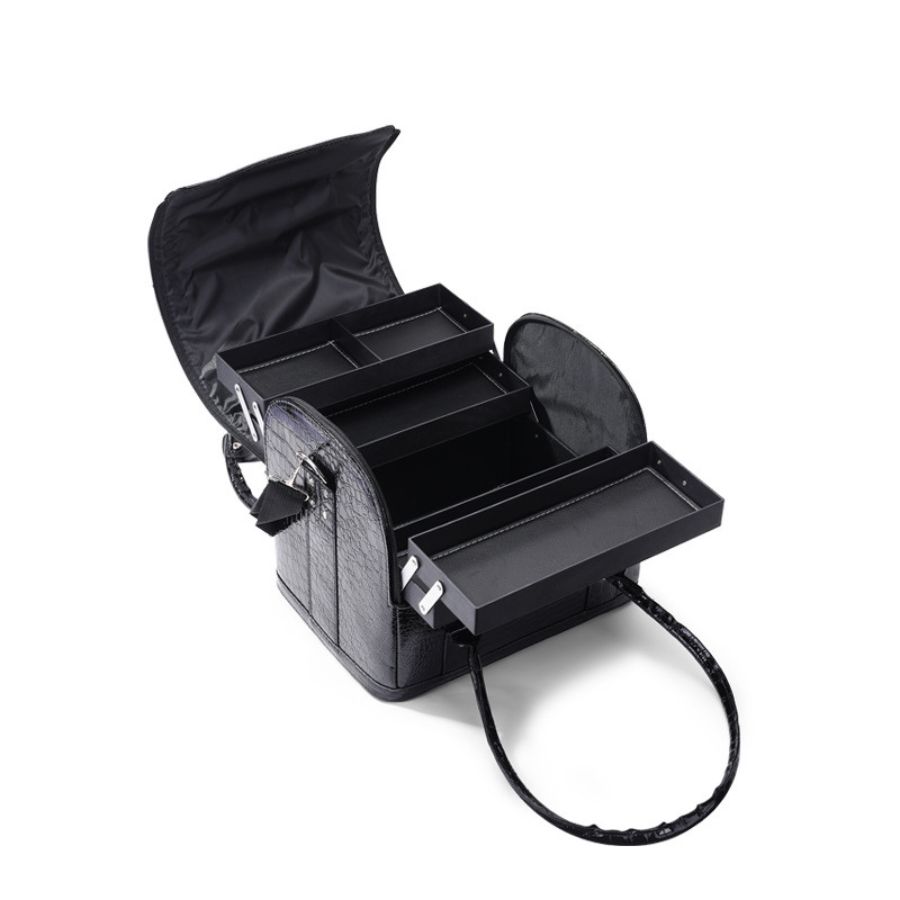 Accesorio práctico y elegante para transportar herramientas y productos de manicura. Su material de semicuero combina resistencia y estilo, ofreciendo un almacenamiento seguro y organizado para tus esenciales profesionales.