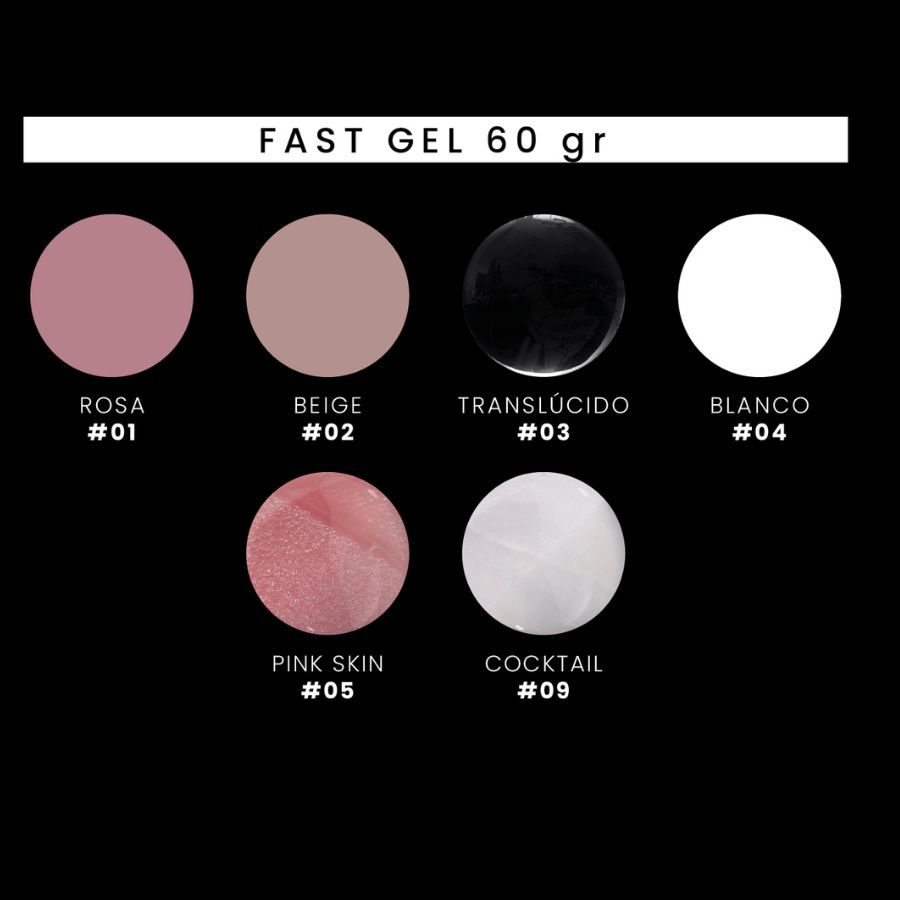 | Fast gel de 60 grs | Beige, Blanco, Cocktail, Pink skin, Rosa, Translucido |