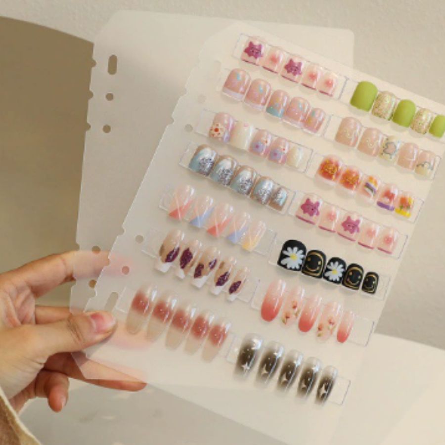 Accesorio diseñado para ampliar tu libro muestrario transparente, permitiendo agregar más colores y diseños a tu colección. Fácil de insertar y reutilizable, mantiene tus tonos organizados y accesibles para mostrar a tus clientas.