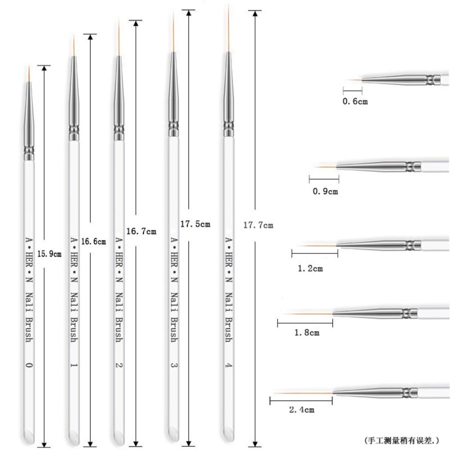 Precisión premium para diseños que hablan por sí solos. Set de 5 pinceles liner Kolinsky, ideales para trazos finos, líneas definidas y nail art de alto nivel.