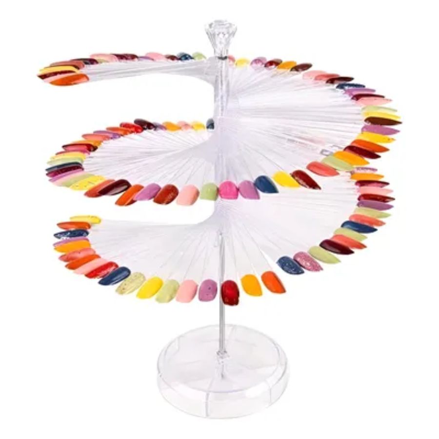 Accesorio diseñado para exhibir y organizar colores de esmaltes y geles. Incluye 120 tips en forma cuadrada, ideales para una visualización clara y prolija de cada tono. Su formato en espiral facilita la presentación y comparación de colores.